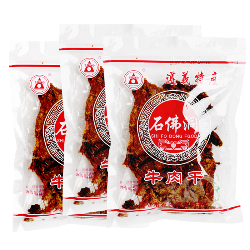 “石佛洞”牛肉干至成立以來(lái)已獲得了兩枚國際金獎、四枚國家金獎和多項省市的獎牌,品牌是以貴州高原盛產(chǎn)的鮮牛肉為主料,加上各種自配香料等精工細作而成,口味有麻辣(川味)、五香(廣味)沙嗲和其他多種口味,形狀有片、條、方顆粒(糖果式)絲等。 其味道香濃可口,很有勁道。